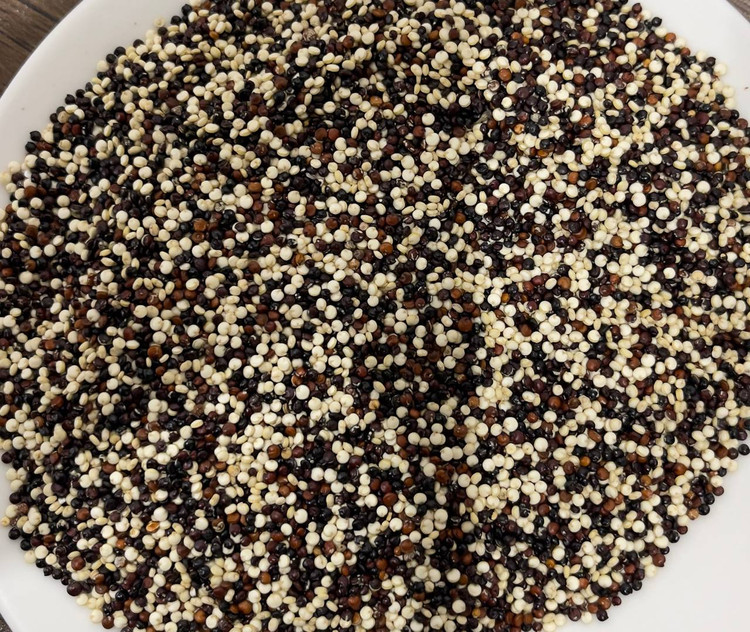 کینوای سه رنگ ترکیبی از هر سه نوع سفید، قرمز و سیاه با طعمی متعادل، ظاهر رنگارنگ و مناسب برای هر نوع غذا است.